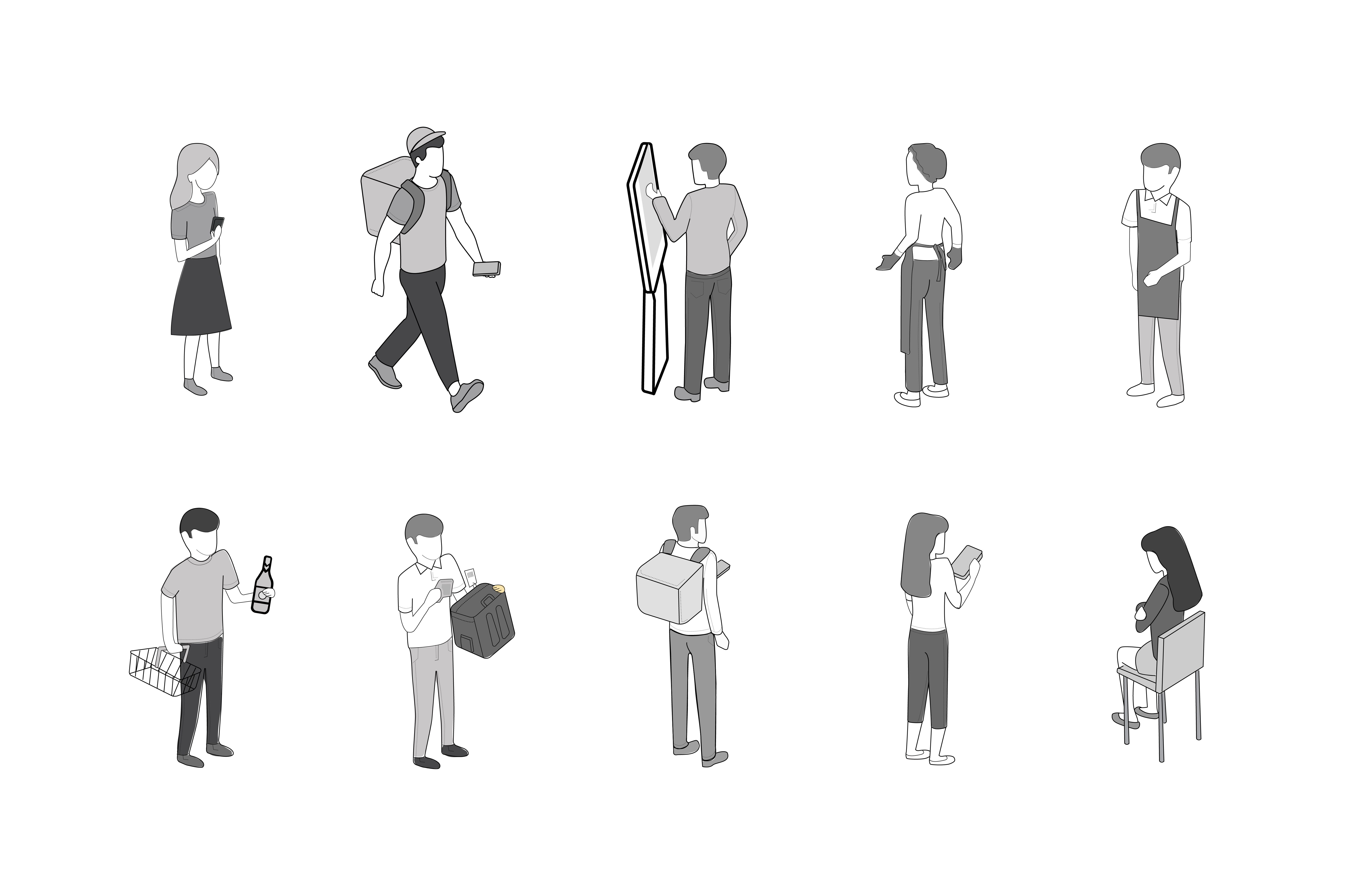 In each scenario, incorporating characters is crucial for effectively showcasing the entire journey. Characters bring the scenarios to life, illustrating how customers interact with Toshiba's products at various touchpoints. By including well-designed characters, I ensure that the customer journey is not only visually engaging but also relatable, helping potential clients understand the practical applications and benefits of Toshiba's solutions in real-world contexts.