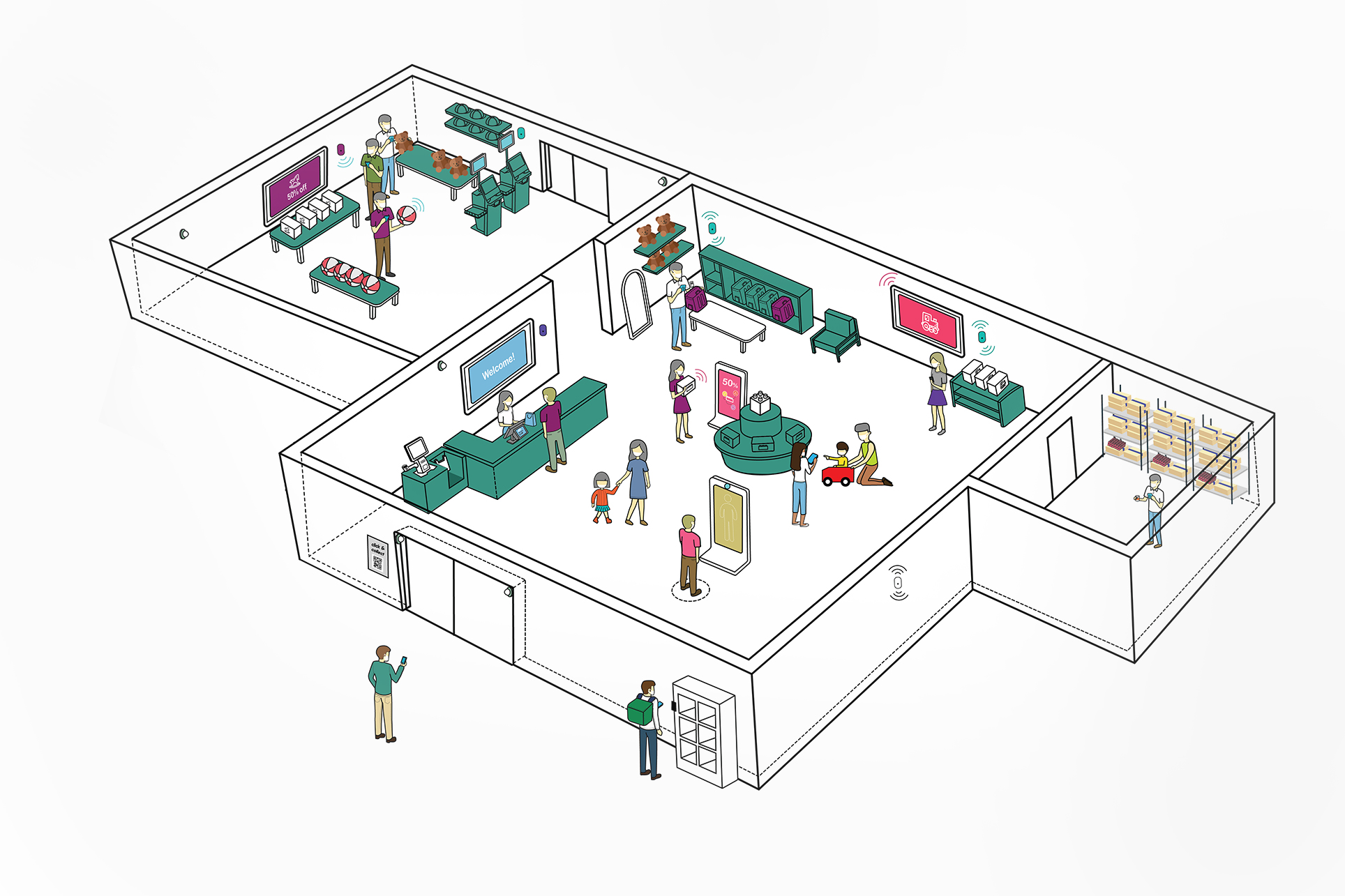 I excel in illustration and use Adobe Illustrator to create detailed isometric drawings. These drawings support the Toshiba presales team in showcasing end-to-end customer journeys, staff journey across various industries. For example, I have illustrated scenarios for convenience stores, food and beverage outlets, retail shops, fashion boutiques, grocery stores, and more. These visual representations help demonstrate Toshiba's solutions in a clear and engaging manner, enhancing the understanding of potential clients.