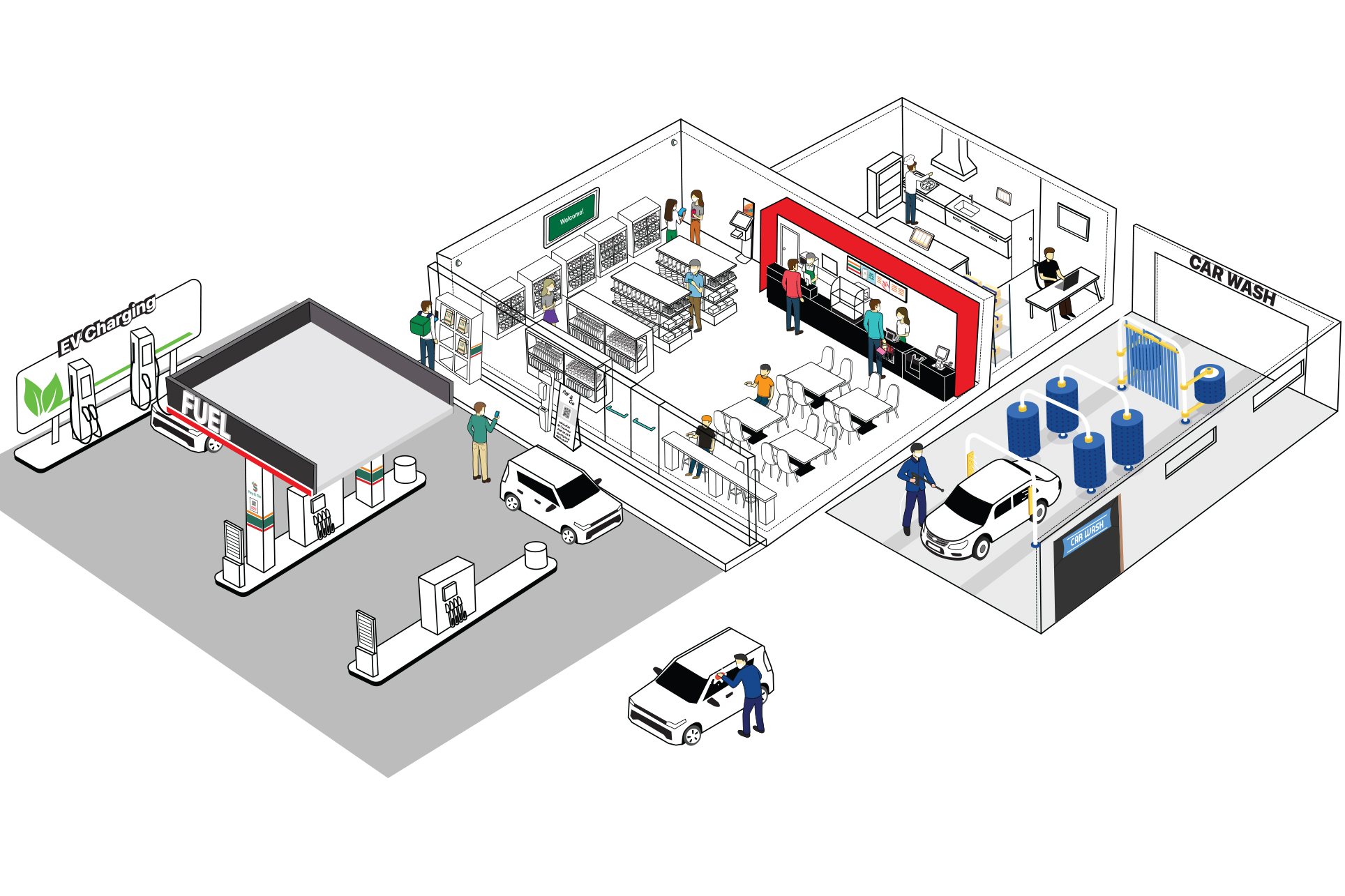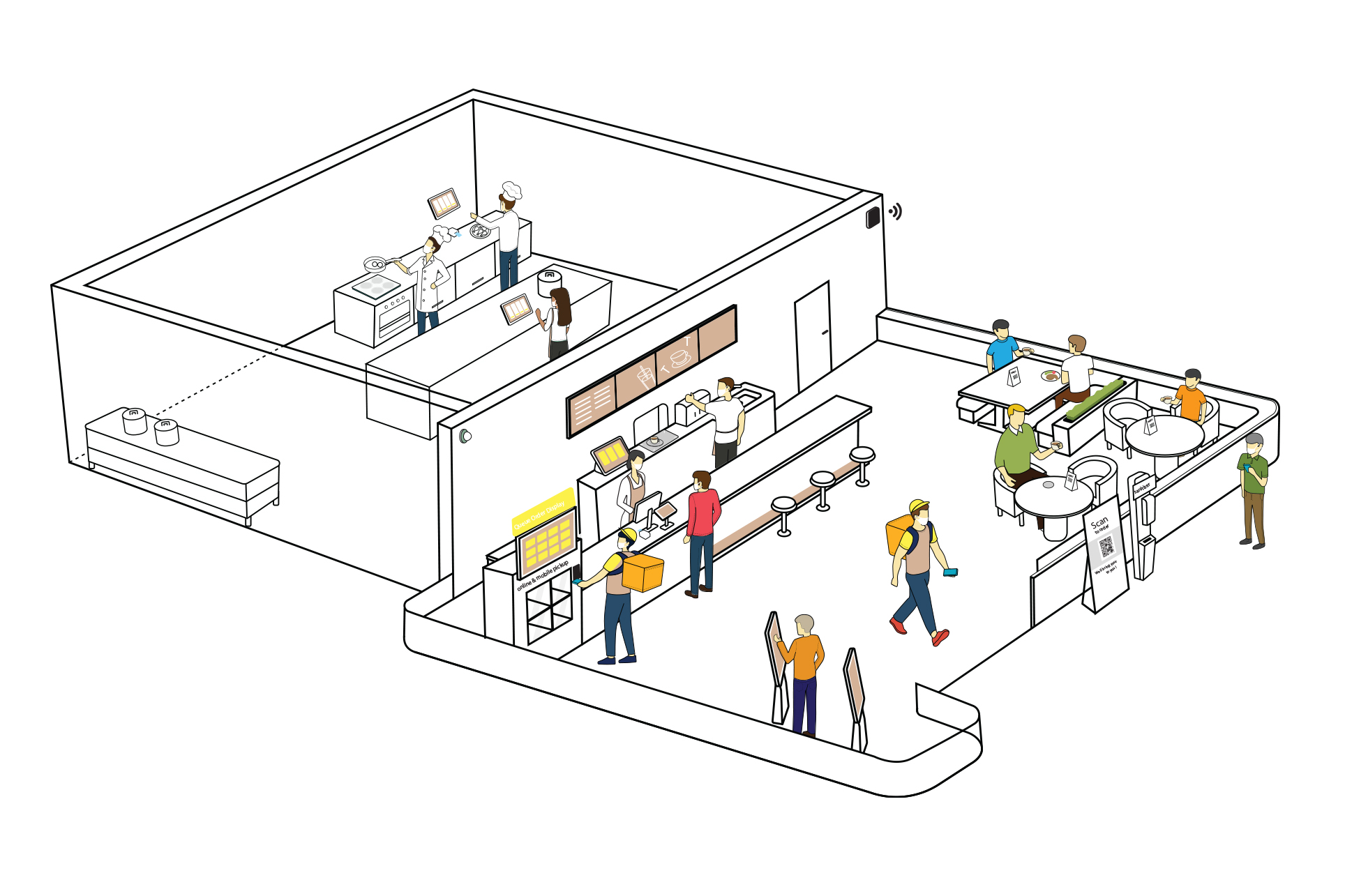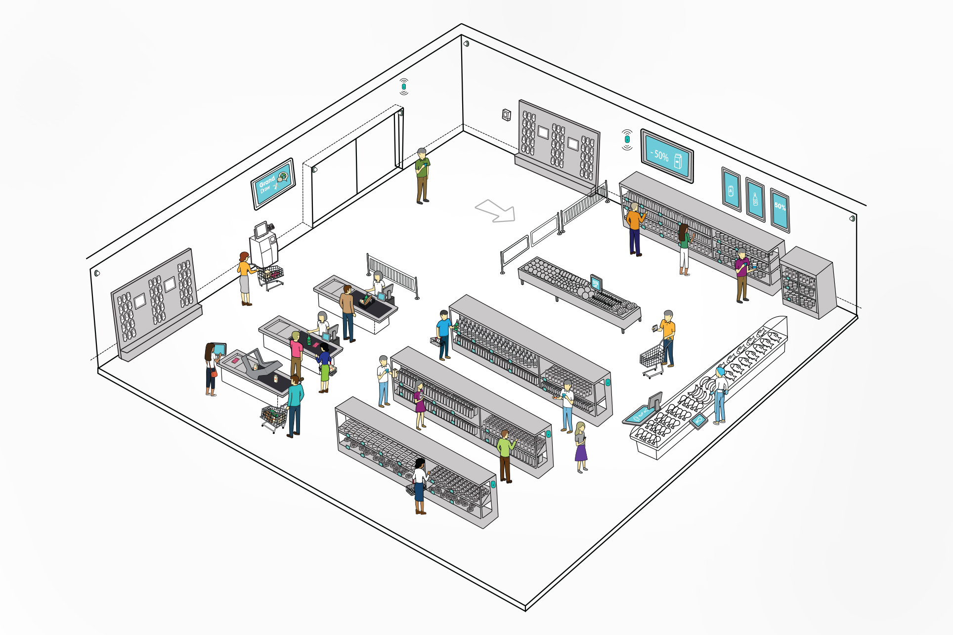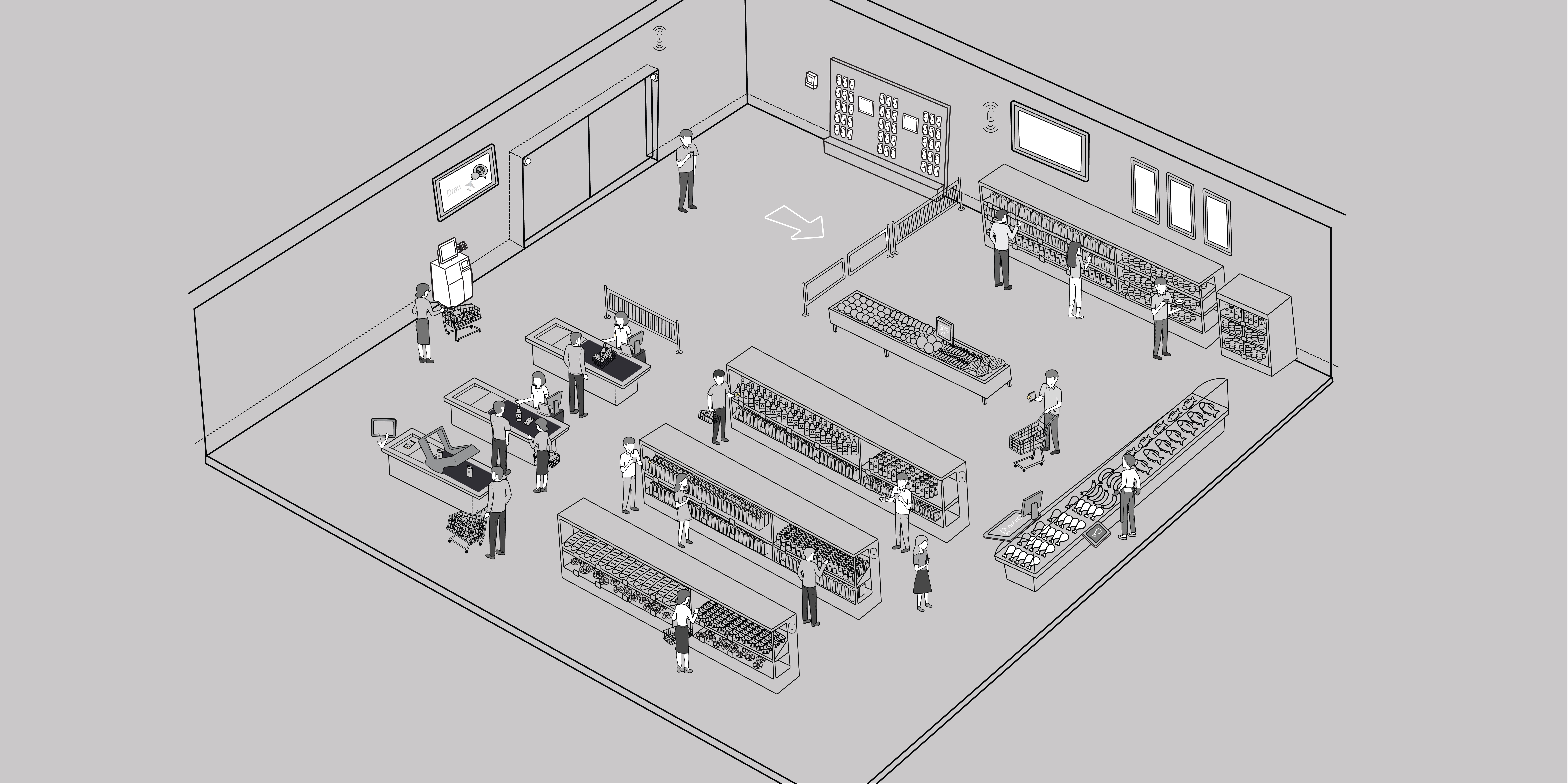 I excel in illustration and use Adobe Illustrator to create detailed isometric drawings. These drawings support the Toshiba presales team in showcasing end-to-end customer journeys, staff journey across various industries. For example, I have illustrated scenarios for convenience stores, food and beverage outlets, retail shops, fashion boutiques, grocery stores, and more. These visual representations help demonstrate Toshiba's solutions in a clear and engaging manner, enhancing the understanding of potential clients.